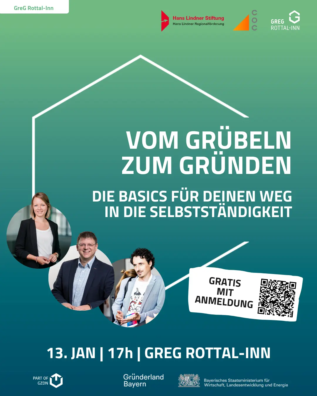 Wer gründet, wächst nicht nur beruflich, sondern persönlich. Dieser Abend ist Dein erster Schritt in diese Richtung: Informativ, inspirierend und mit Menschen, die den Weg schon gegangen sind.
